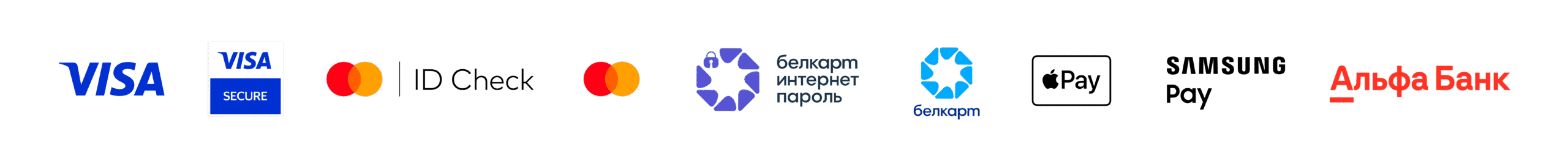 К оплате принимаются карты международных платежных систем VISA, MasterCard, платежной системы БЕЛКАРТ, платежной системы МИР. Оплату также можно совершить посредством сервисов Apple Pay, Samsung Pay.